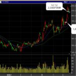 - 4日目(12/2): この日はあまり値動きなく、少しだけ上昇したが、高値は切り下げて来たため、逆指値を12/1高値1,482円に引き下げる。